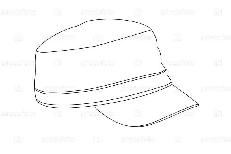 Кепка, черный контур на белом фоне