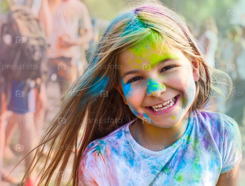 Портрет счастливой девочки на празднике Холи