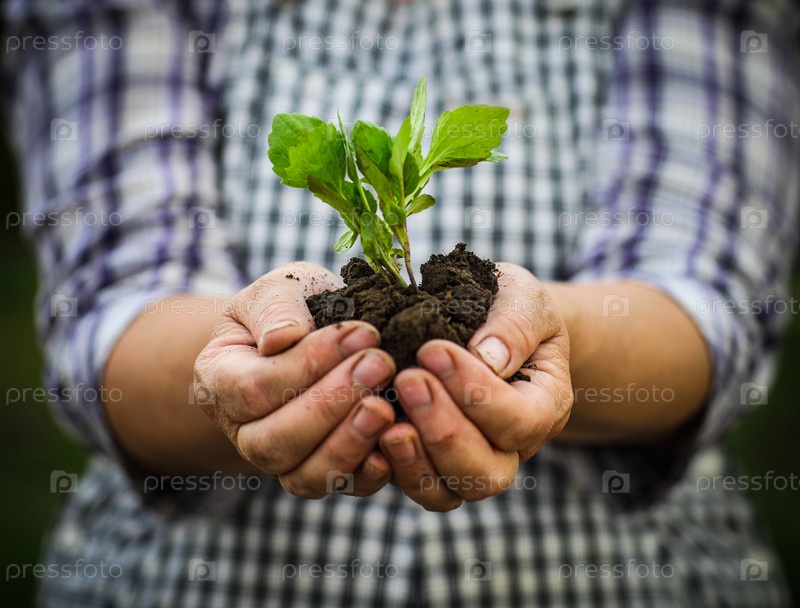 Зеленое молодое растение в женских руках