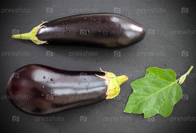 Свежие баклажаны с листьями
