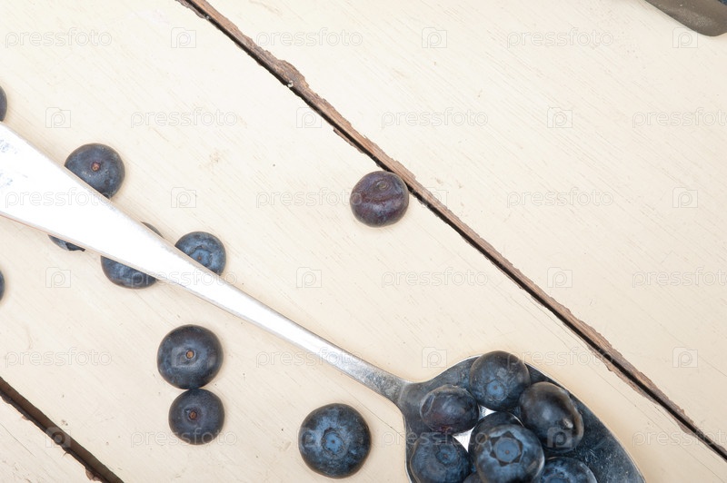 Свежая черника в серебряной ложке