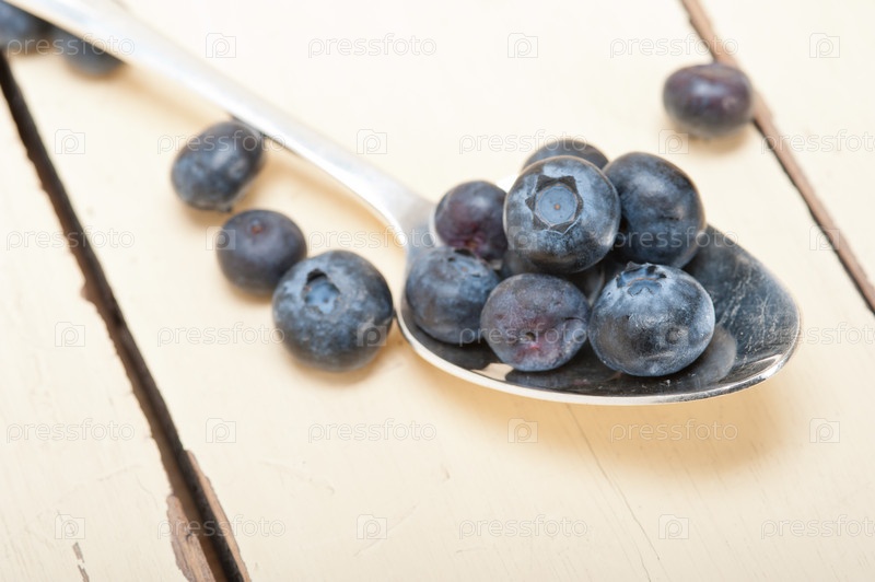 Свежая черника в серебряной ложке