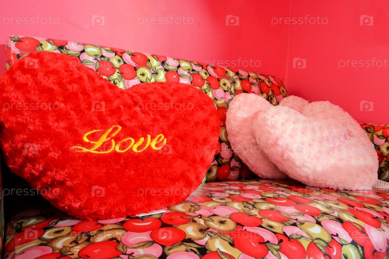 Пушистые подушки в форме сердца