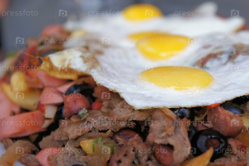 Яичница с мясом и овощами