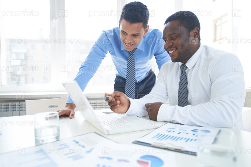 Бизнесмены работают с ноутбуком