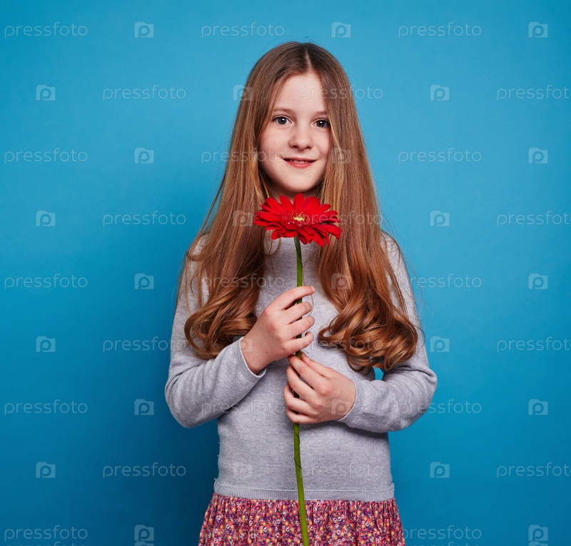 Девочка с красным цветком