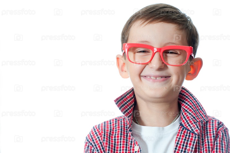 Счастливый мальчик в красных очках