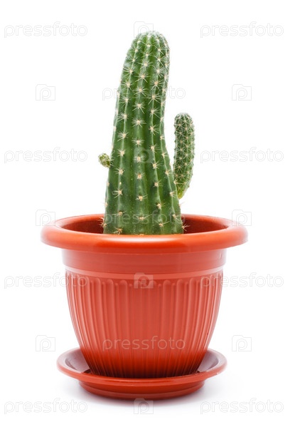 Кактус в горшке на белом