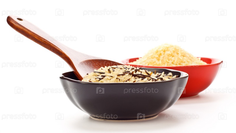 Две миски с рисом и деревянная ложка