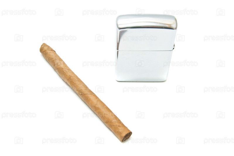 Сигара и металлическая зажигалка