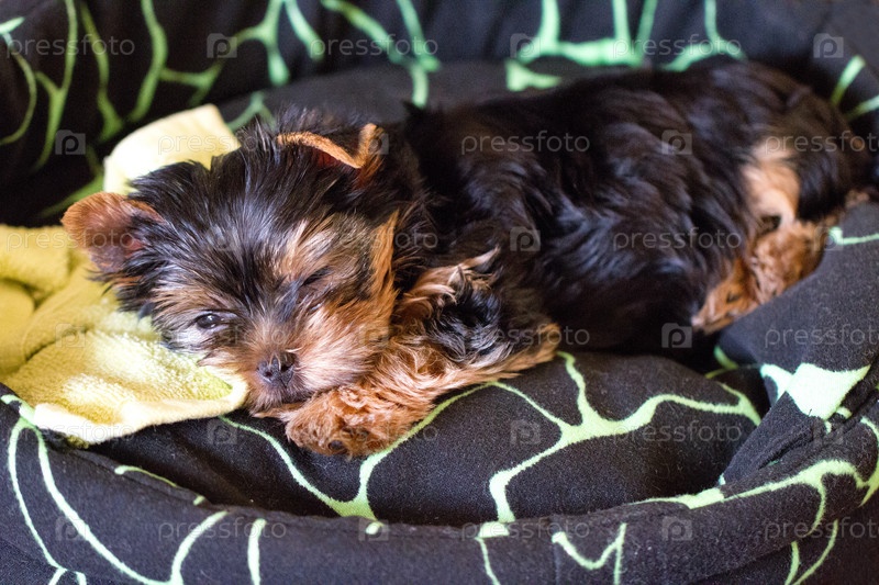Спящий щенок породы йоркширский терьер