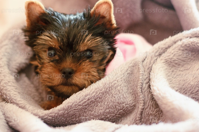 Спящий щенок породы йоркширский терьер