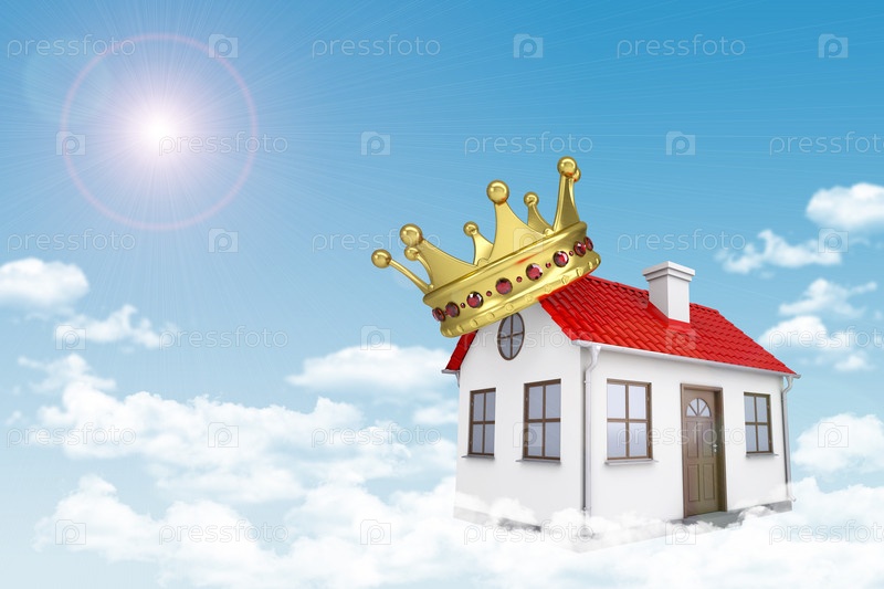 Белый дом с красной крышей в короне