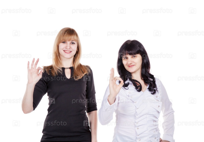 Две молодые женщины показывает знак ОК