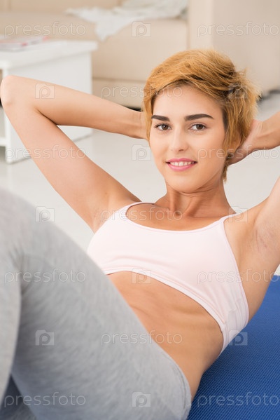 Женщина качает пресс