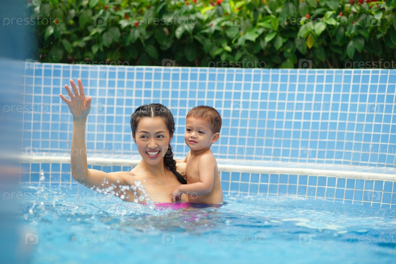 Женщина и мальчик в бассейне