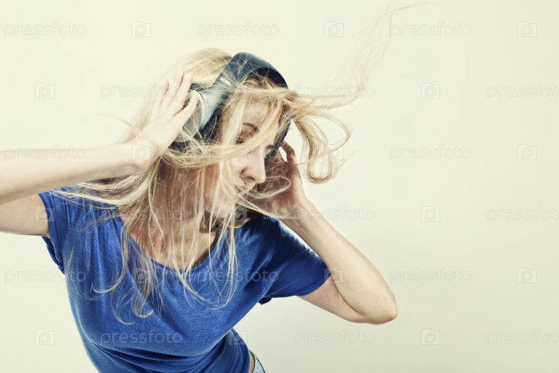 Молодая женщина с наушниками на светлом фоне