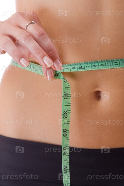 Женщина измеряет объем талии