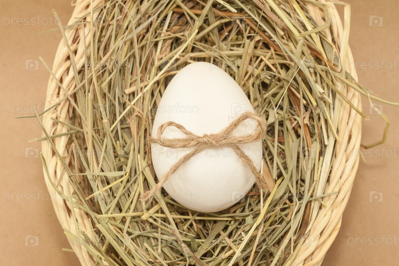 Пасхальное яйцо с бантом в корзине