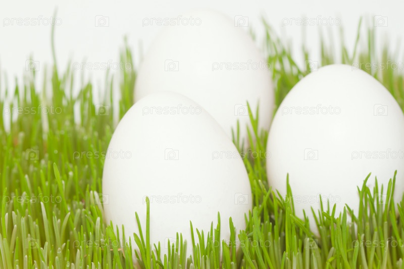 Три белых яйца в траве