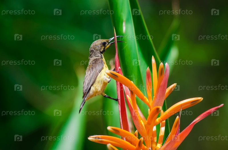 Экзотическая птица на цветке