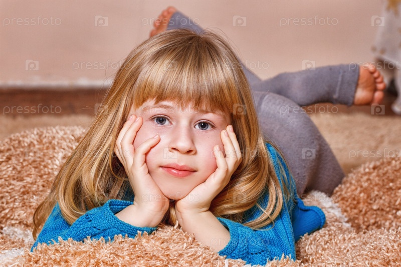 Девуочка лежит на ковре