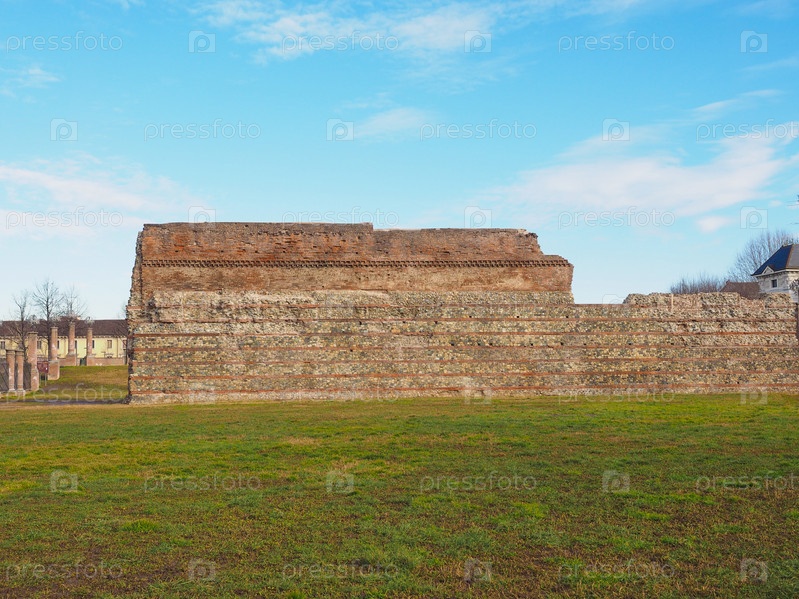 Руины древнеримских стен в Турине. Италия