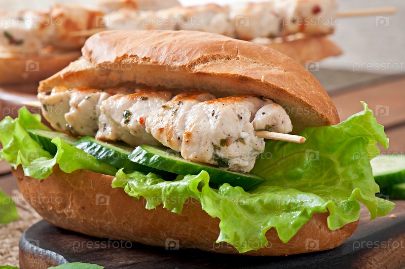 Большой бутерброд с курициным шашлыком и салатом