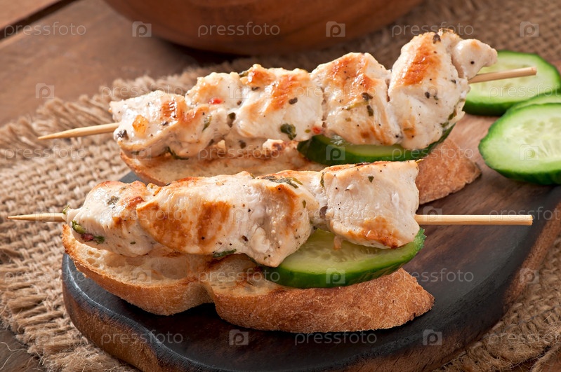 Куриные шашлыки на шпажках с тостами