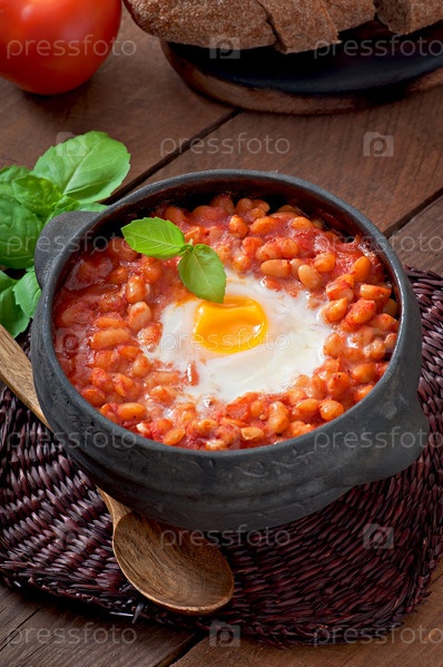 Запеченные яйца с фасолью в томатном соусе в мексиканском стиле