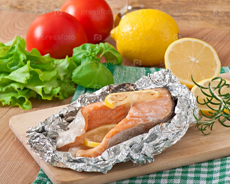 Запеченный лосось в фольге с лимоном и луком