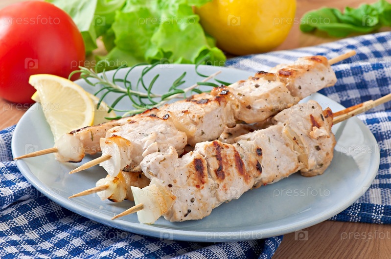 Свиной кебаб с луком, жареный на гриле