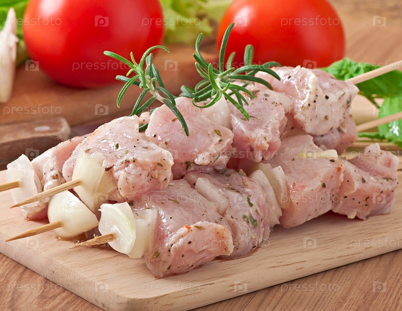 Маринованные куски мяса для шашлыка
