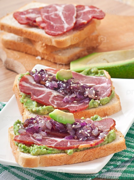 Сэндвич с ветчиной, авокадо и карамелизированным луком