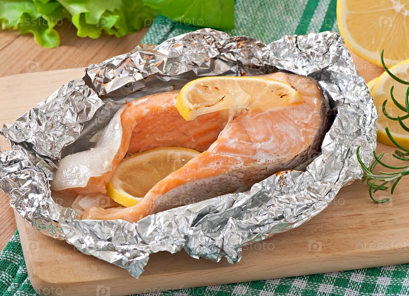 Запеченный в фольге лосось с лимоном и луком