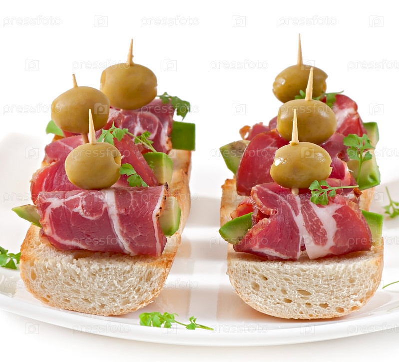 Тост с ветчиной, авокадо и оливками