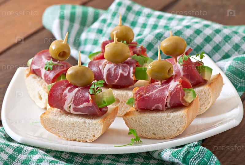 Тост с ветчиной, авокадо и оливками