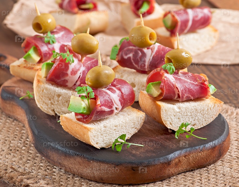 Тост с ветчиной, авокадо и оливками