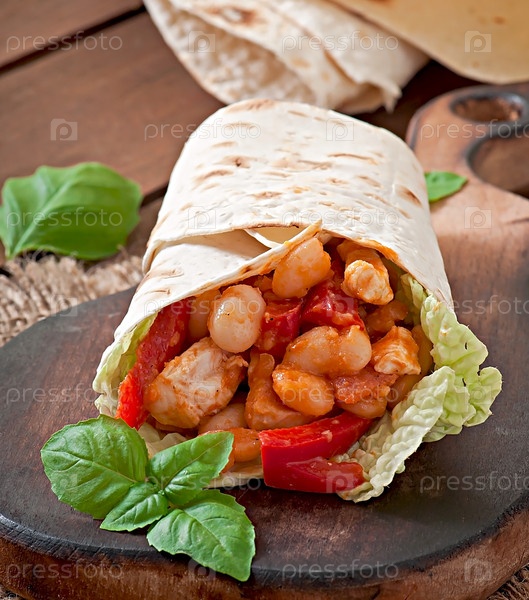 Буррито с курицей, фасолью, помидорами и сладким перцем