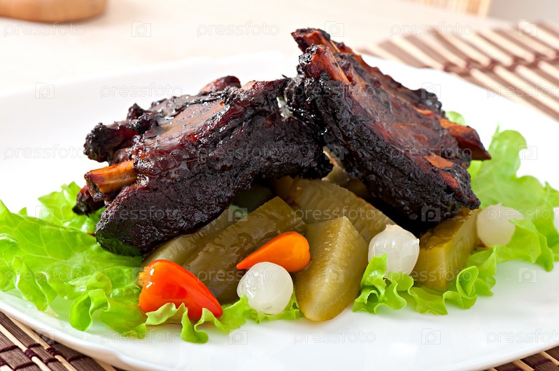 Запеченные говяжьи ребрышки в маринаде с овощами