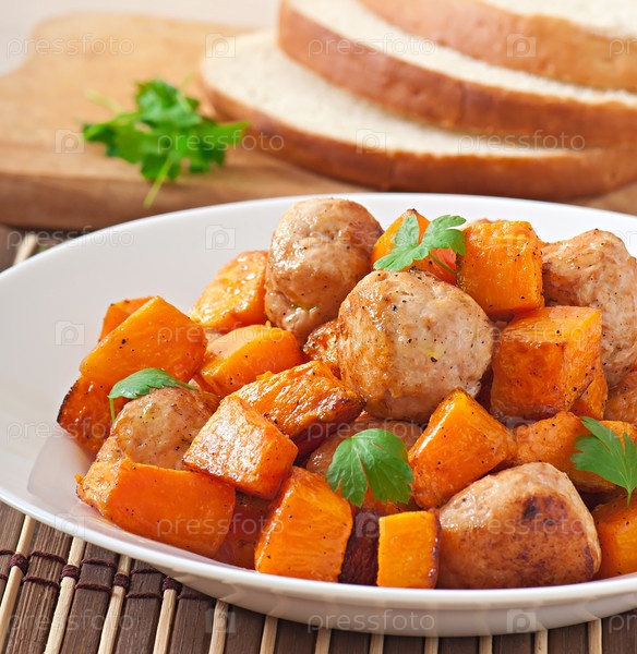 Куриные котлеты с гарниром из тыквы