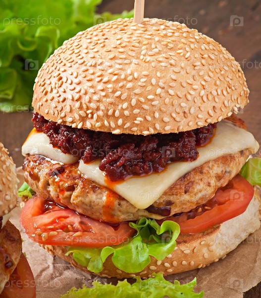 Американский бургер с курицей, беконом и домашним соусом "Барбекю"