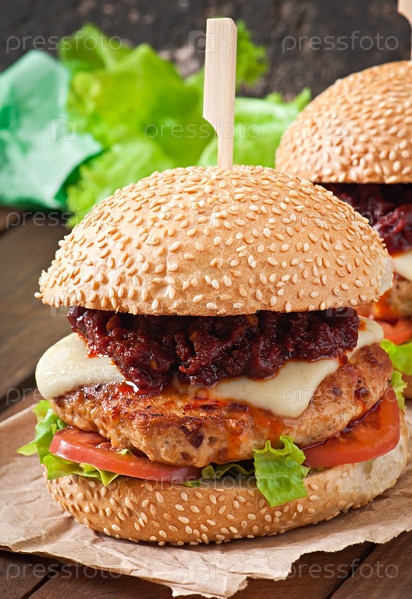 Американский бургер с курицей, беконом и домашним соусом "Барбекю"