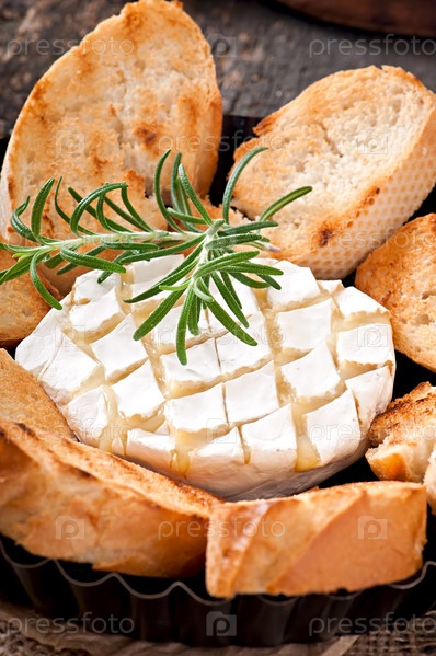 Запеченный сыр камамбер с тостами, чесноком и розмарином