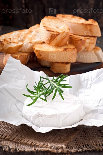 Запеченный сыр камамбер с тостами, чесноком и розмарином