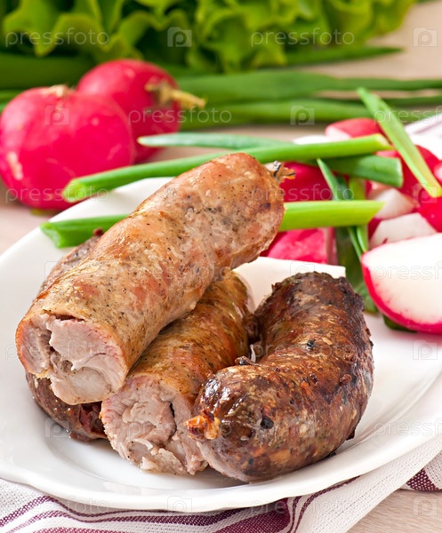 Запеченные домашние колбаски с салатом