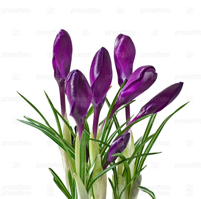 Фиолетовые крокусы, изолированные на белом фоне
