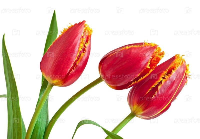 Весенний букет из красных тюльпанов, изолированный на белом фоне