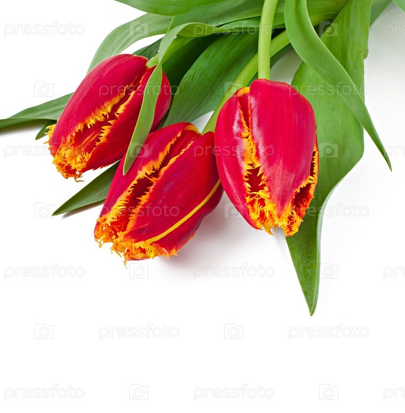 Весенний букет из красных тюльпанов, изолированный на белом фоне