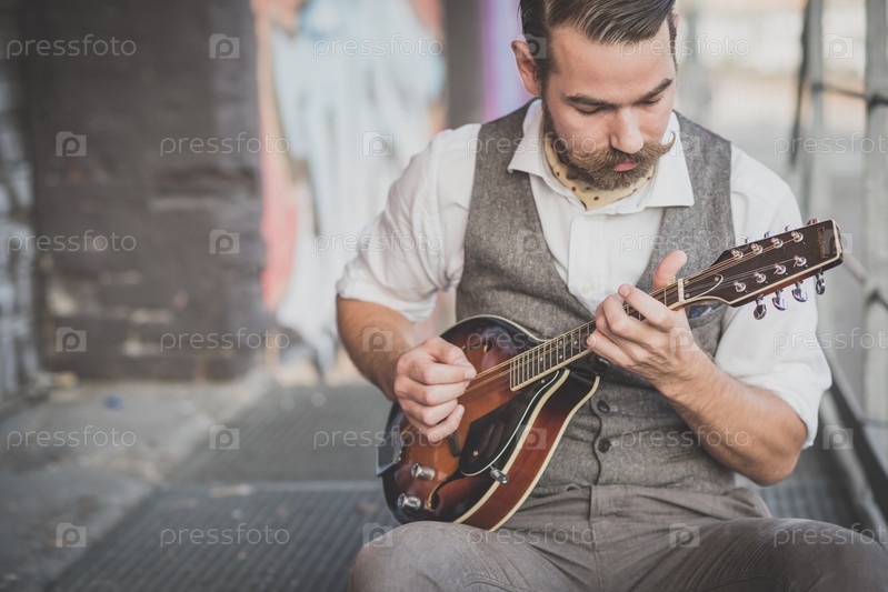 Хипстер играет на мандолине